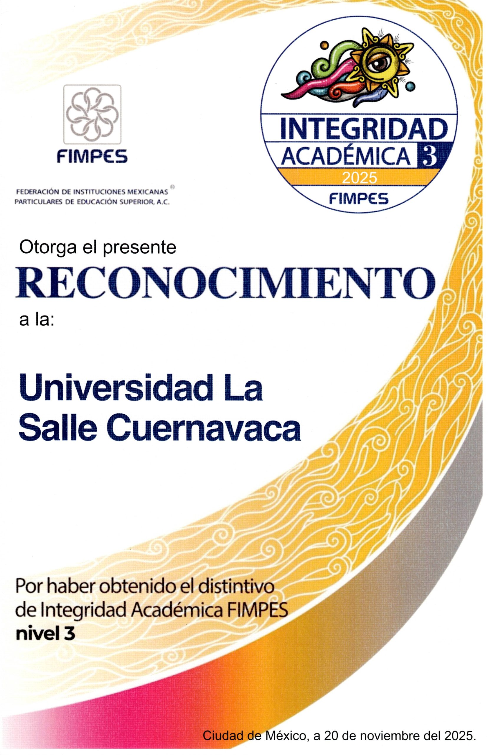 Distintivo de Integridad Académica FIMPES niveles 1, 2 y 3